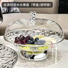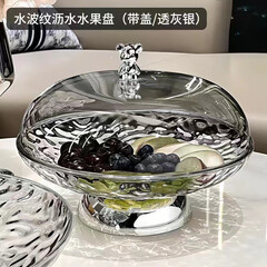 正兴阳陶瓷创意水果盘家用客厅茶几轻奢摆放零食干果收纳盒沥水果篮双层果盆 水波纹沥水果盘【带盖】透明白