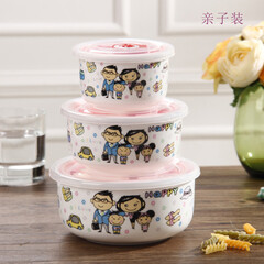 正兴阳陶瓷(ZHENGXINGYANG)陶瓷保鲜碗套装带盖保鲜盒密封大号泡面碗家用便当饭盒学生带饭碗 亲子装