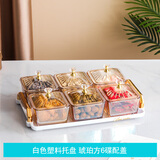 轻奢长方形托盘家用分格糖果盘放水杯塑料茶盘水果盘干果收纳盘 白塑料托盘+琥珀方6碟配盖