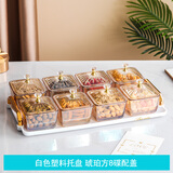 轻奢长方形托盘家用分格糖果盘放水杯塑料茶盘水果盘干果收纳盘 白塑料托盘+琥珀方8碟配盖