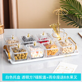 轻奢长方形托盘家用分格糖果盘放水杯塑料茶盘水果盘干果收纳盘 白托盘+透明方7碟配盖+水果叉座