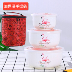 正兴阳陶瓷(ZHENGXINGYANG)陶瓷保鲜碗套装带盖保鲜盒密封大号泡面碗家用便当饭盒学生带饭碗 火烈鸟+红袋