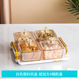 轻奢长方形托盘家用分格糖果盘放水杯塑料茶盘水果盘干果收纳盘 白塑料托盘+琥珀方4碟配盖