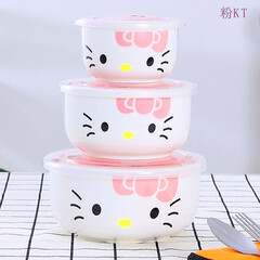 正兴阳陶瓷(ZHENGXINGYANG)陶瓷保鲜碗套装带盖保鲜盒密封大号泡面碗家用便当饭盒学生带饭碗 粉KT