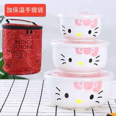 正兴阳 陶瓷保鲜碗三件套带盖保鲜盒密封大号泡面碗家用便当饭盒学生带饭碗 陶瓷小米碗家用餐具装饭碗汤碗 招财猫
