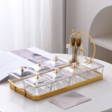 正兴阳陶瓷(ZHENGXINGYANG) 高颜值水果盘客厅家用盘果盘前台甜品台摆件美容院点心糖果盘 7格玻璃水果盘带盖+收纳罐+8叉(金色)
