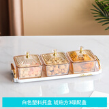 轻奢长方形托盘家用分格糖果盘放水杯塑料茶盘水果盘干果收纳盘 白塑料托盘+琥珀方3碟配盖